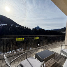 - Pièce de vie (28,2 m2) avec accès sur le grand balcon et sa terrasse abritée